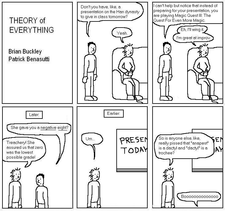 A collaboration with my good friend Pat Benasutti during our college years. He did a lot of the art, I did a lot of the writing, and we thought up ideas together. Although the project never quite materialized into a polished final product the way we were hoping, we still managed to create almost a hundred comics.