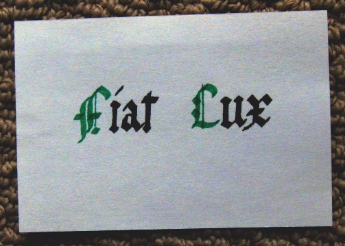 - Fiat Lux — Latin for “Let there be Light,” from Genesis 1:3